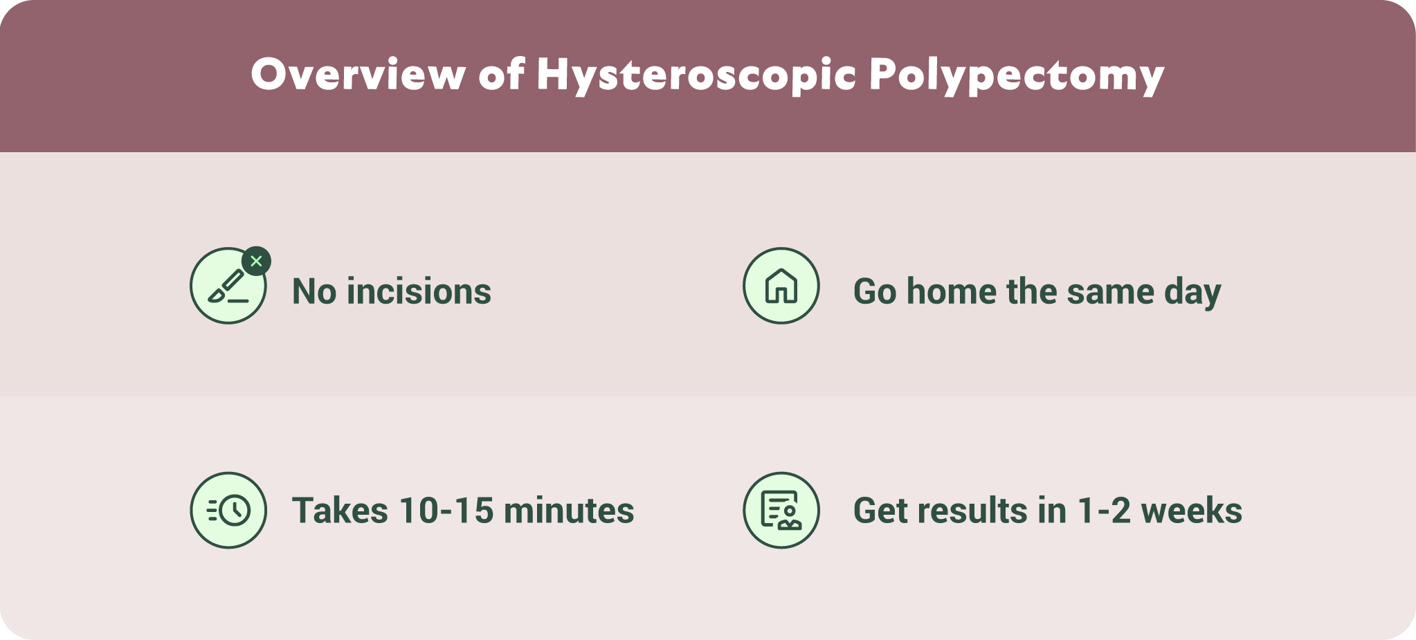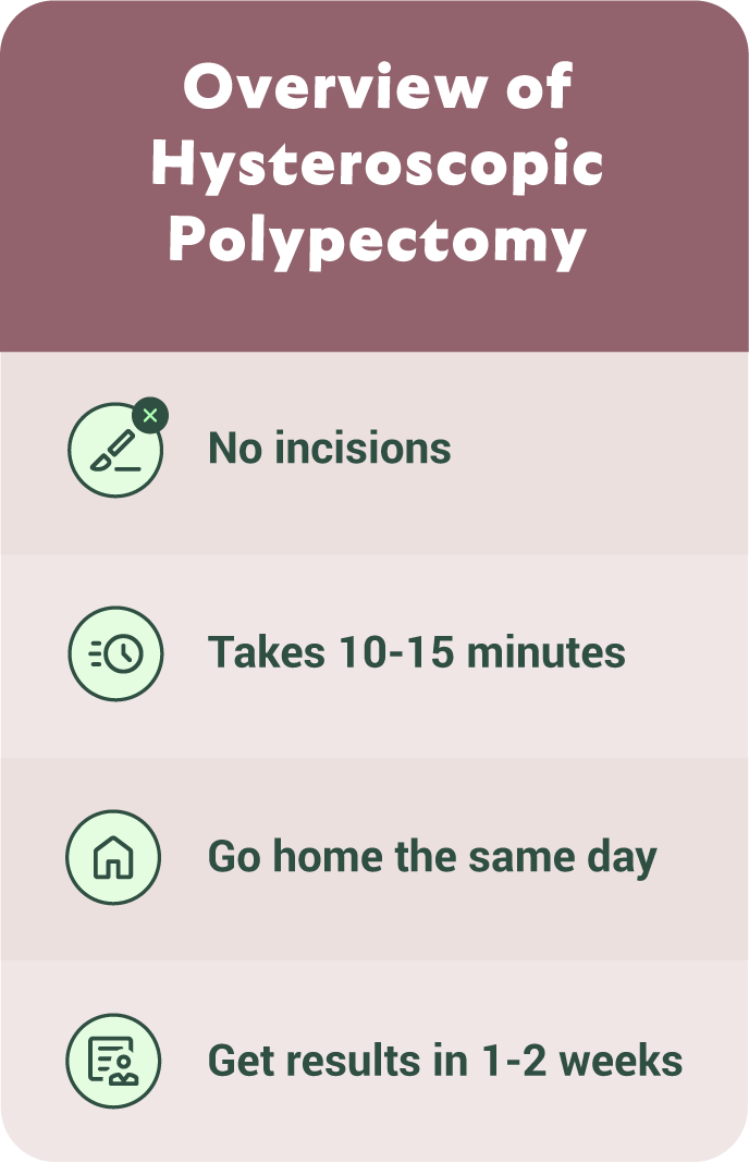 Most patients experience immediate relief from abnormal bleeding, improved menstrual regularity, and clarity from pathology results. Finding out you have a mass in your uterus can be stressful; a polypectomy (and the associated tissue analysis) brings many patients peace.