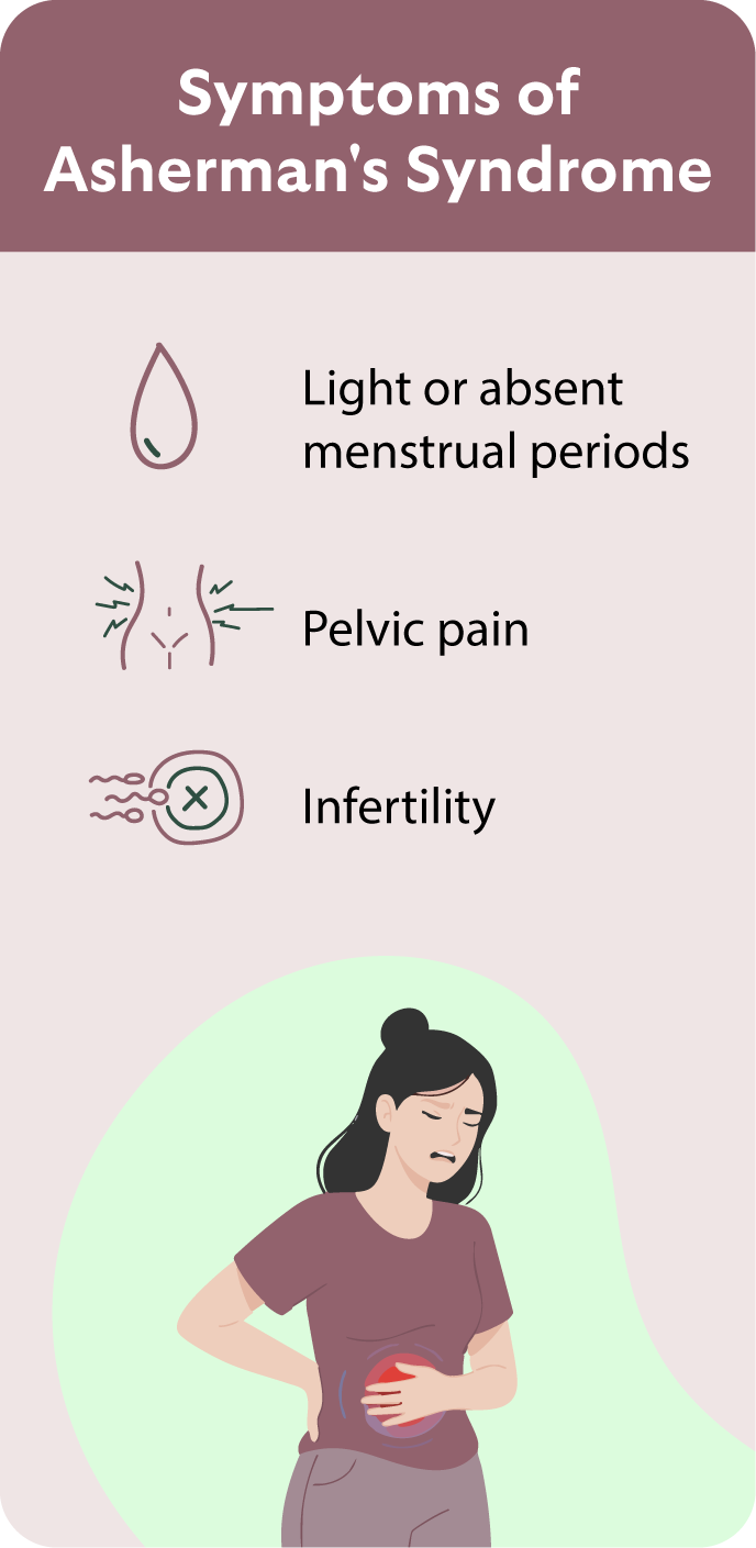 1. Symptom Onset Lighter or absent periods, pain, infertility, or miscarriage First signs that may indicate uterine adhesions